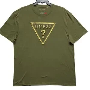 Guess Mens Olive Green Gold 3D Triangle Logo T-Shirt XL NWT