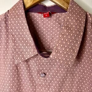 Pink button up dress shirt with geometric print from Guess. In good used condition.