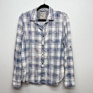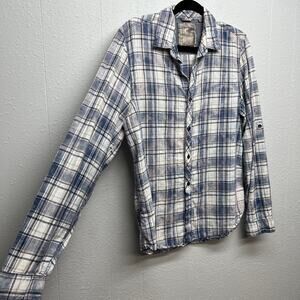 Guess Men's Plaid Linen Blend Slim Shirt Medium Western Cowboy Rodeo Breathable