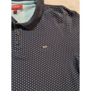 Guess Men's Short Sleeve Polo Shirt Geometric pattern Blue Large