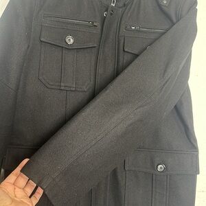 Guess Men’s Size Large Black Wool Blend Coat Multiple Pockets Full Zip