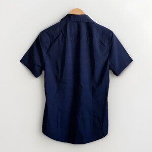 Guess Mens Solid Button Down Blue Shirt Size Small Short Sleeve Front Button