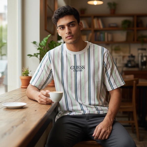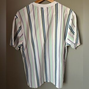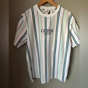 Guess Men's Striped Tee - Pink, Blue, Green Size Medium Vintage Style