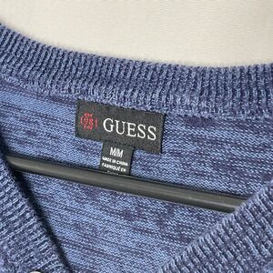Guess Mens Sweater M Vee Neck Blue Stripe Y2K Indie Skater Hipster