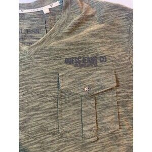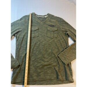 Guess Mens T-Shirt Size XL Green Long Sleeve V-Neck Pockets Casual Everyday