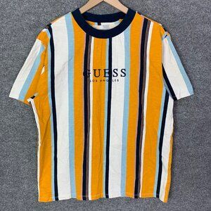 Keywords: Guess t-shirt, mens tie dye shirt, lightning bolt graphic tee, vintage guess shirt, retro guess tee, blue green red tie dye, mens graphic t-shirt, casual t-shirt, streetwear tee, festival shirt, guess logo shirt, summer tee, bold print shirt