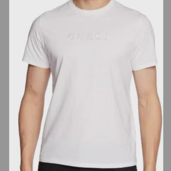 Guess Men's White Short Sleeve CrewneckEmbroidered Logo T-Shirt Size S