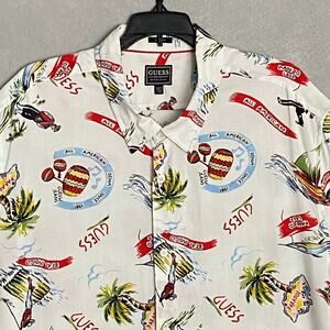 Guess Men's XXL Casual Short Sleeve Button-Up Shirt Slim Fit Novelty Print NEW