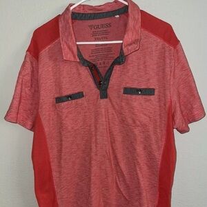Guess Men's XXLarge Polo Short Sleeve Shirt Red Cotton Polyester Great preowned condition