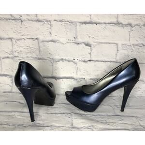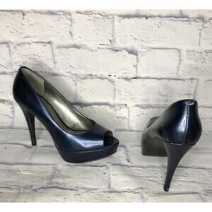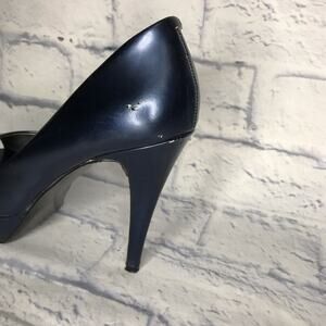 NO SHOE BOX. Various scuffs on heel and front left shoe, peeptoe, high heel, leather upper, shows signs of wear, style: WGABELLONA Preloved