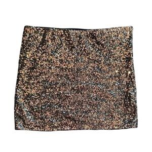 DESCRIPTION: brown, gold, sequins, mini skirt, zipper closure, lining inside