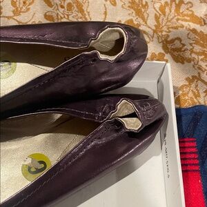 Chic metallic purple flats with decorative embellishment. Ideal for stylish outings.