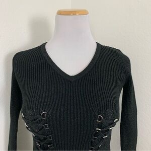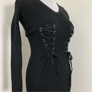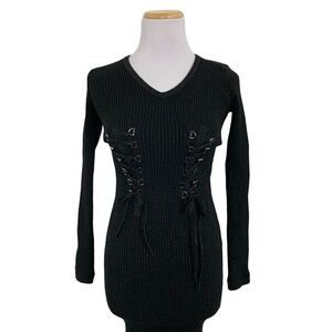 Guess Metallic Ribbed Knit Lace Up Corset Bodycon Dress Retro Y2K