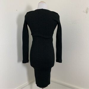 Guess Metallic Ribbed Knit Lace Up Bodycon Dress