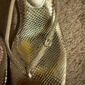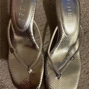 Chic Guess flip flops with a metallic snake pattern. Ideal for casual outings.