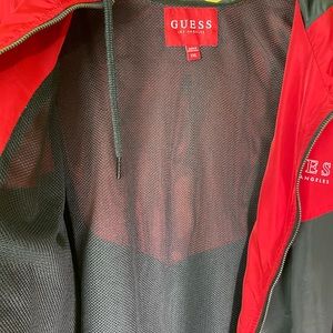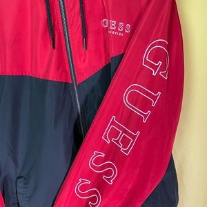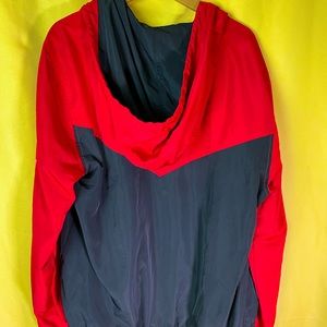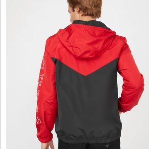 A lightweight hooded jacket with logo details and a color-block design for throwback vibes. Front zipper closure and slash pockets.