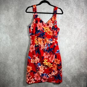 Guess Mini Dress Womens Size 14 Floral Faux Wrap Sleeveless Lined Artsy Retro