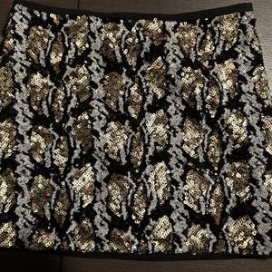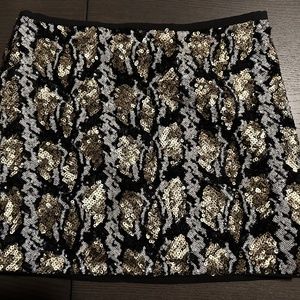 Guess Mini Skirt Sequin Snake Skin Pattern Black/Gold/White Sz Small (Like New!)