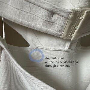 · Flaws: In perfect condition; has one tiny little spot that is on the inside of the dress shown in photos that does not show on the outside. also the clasp for the adjustable back is off-white.