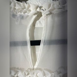 Cream, sheer woven shirt with 6 horizontal 1" Ruffles.
