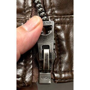 Guess Moto Hoodie Jacket Mens Large Faux Leather Brown Hooded Removable Insert