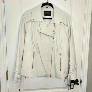 Guess Moto jacket Plus size 2x cream color NWT vegan leather