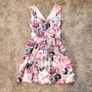 Guess Multicolored Abstract Floral Sleeveless Sweet Heart Neckline Dress Sz 6