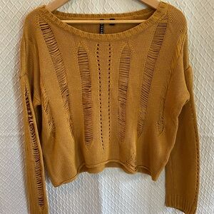 Guess Mustard Knit Sweater. Crop Style. Distressed. Medium.