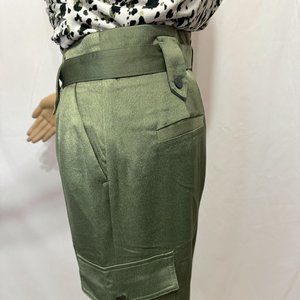 Guess NWT Sz4 Lichen Leaf Green Cargo Flap Patch Pockets Silky Dress Pants