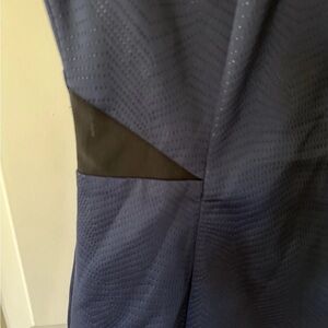 Elegant navy mini dress with black accents. Perfect for any occasion. Sleek and stylish design.