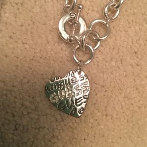 Guess Silver necklace and bracelet set. Black and silver sparkle details in each heart shaped charm.