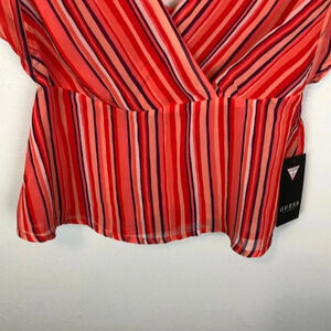 Guess New Women’s XS Marrah Striped Flutter-Sleeve Top