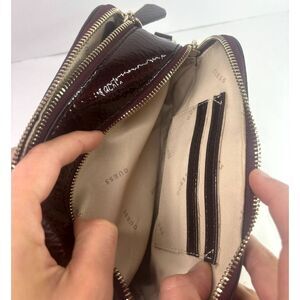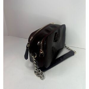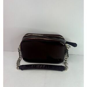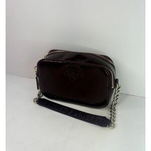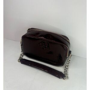 Guess Noelle Shiny Leather Women Shoulder Hand Bag Merlot Burgundy Silver Chain