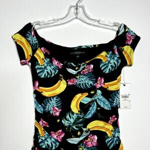 Guess Off The Shoulder Maeko Dress Black Womens Small MSRP $79