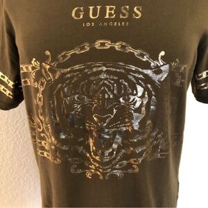 Really nice VTG Guess T short in olive green with lions head and gold embellishment. In good preloved condition. Size Medium. Measurements in photos.