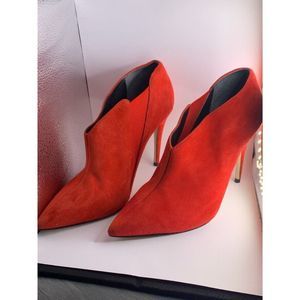 Guess Ondrea Pointed Ankle Booties Red Suede Size US 6M Retail $119 NWOB, VIEW PHOTOS BEFORE PURCHASE IT SHOES EVER ANGLE OF HEELS. TOOK PHOTO OUTSIDE WHITE BOX TO SEE TRUE COLOR. QUESTIONS? JUST ASK ❤️