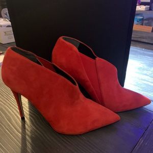 Guess Ondrea Pointed Ankle Booties Red Suede Size US 6M Retail $119 NWOB