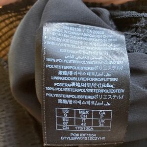 This has a crinkle type light flowy material. Elastic on bottom and across top and shoulder. I took the Guess branded metal tab off the waist so there is no more Guess branding. The shoulder should sit right across the top side of the shoulder. I used a little double sided tape to hold it in place. Size small. Please look at measurements. I am a 34 B and it fits just right. Anything larger will be too tight. Preowned, measurements are approximate