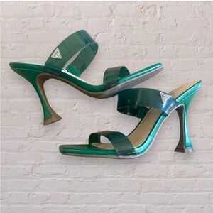 Guess Open Toe Hunter Green Clear High Heel Slip On Sandals Size 7