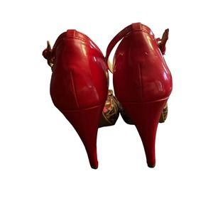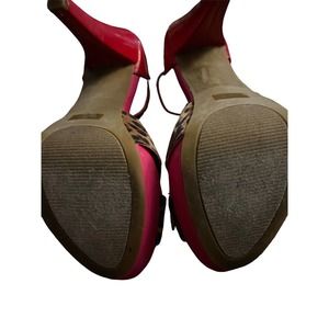 Guess Open-Toed Strappy Pink Red and Leopard Print GG Harty High Heels Women 7 M
