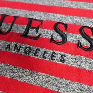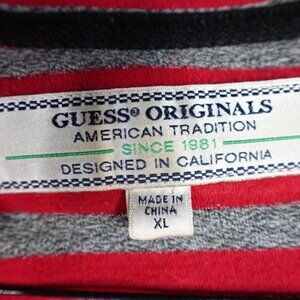Guess Originals T-shirt XL Red Gray Striped Embroidered Spellout Retro