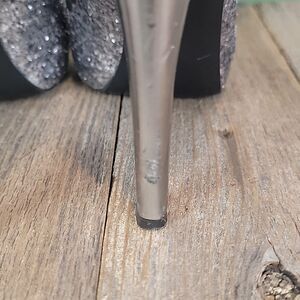 The perfect evening platform pump by Guess with the chic glitter silver upper, peep toe, and a 4.5 inch heel. Good pre-owned condition with normal signs of wash and wear, including some minor marks on the back heel. See pictures.