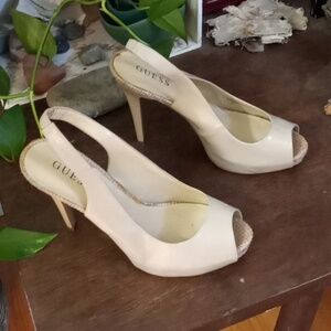 Guess Cream NudePatent Leather Platform Slingbacks, Neutral, Timeless, Classic, Versatile, Classic, Y2K, Old Money, minor wear on inside,(pics) unnoticeable, Comfy, Spring, Summer