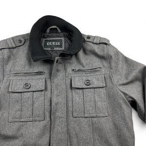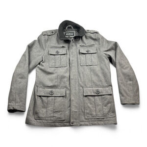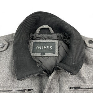 Guess Pea Coat Adult LARGE Gray Wool Quilted Lined Jacket Military Field