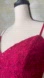 Chic asymmetrical lace dress by Guess. Features a vibrant dark fuchsia/ deep magenta color. Lace overlay with delicate sequins for a subtle shimmer. Features adjustable spaghetti straps, sweetheart neckline, side zip closure, and a fully lined interior for comfort.