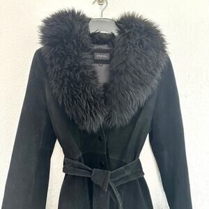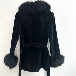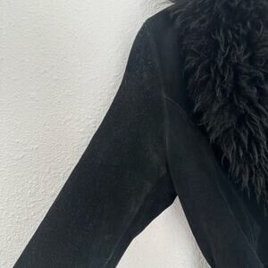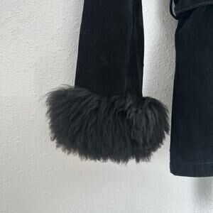 Guess Penny Lane Coat Black Suede Leather Lamb Fur Vintage 90s Y2K Witchy