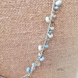 Guess multi Stone with peridot necklace measures 23 inches with 3 inch extender.