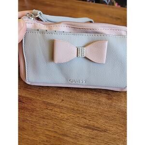Guess Pink Gray Wristlet Wallet Bow Rhinsetone