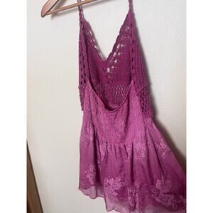 Guess Pink Hailey Crochet Embroidered Halter Top Viscose Silk Women’s Sz Large