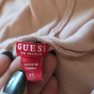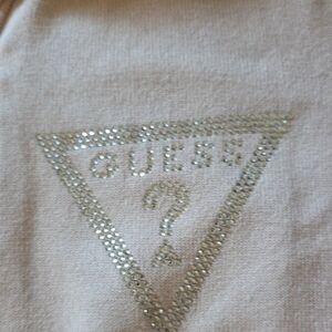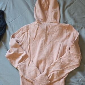 Soft pink cardigan with hood. Features Guess logo on front. Full zip closure.
